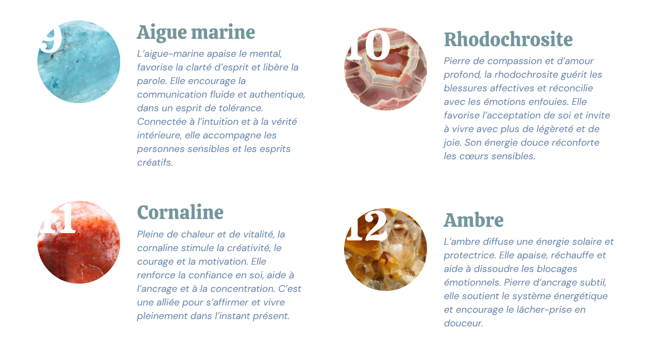 Chaque chiffre obtenu lors des calculs (de 1 à 33) est relié à une pierre spécifique, connue pour sa vibration en résonance avec le nombre.